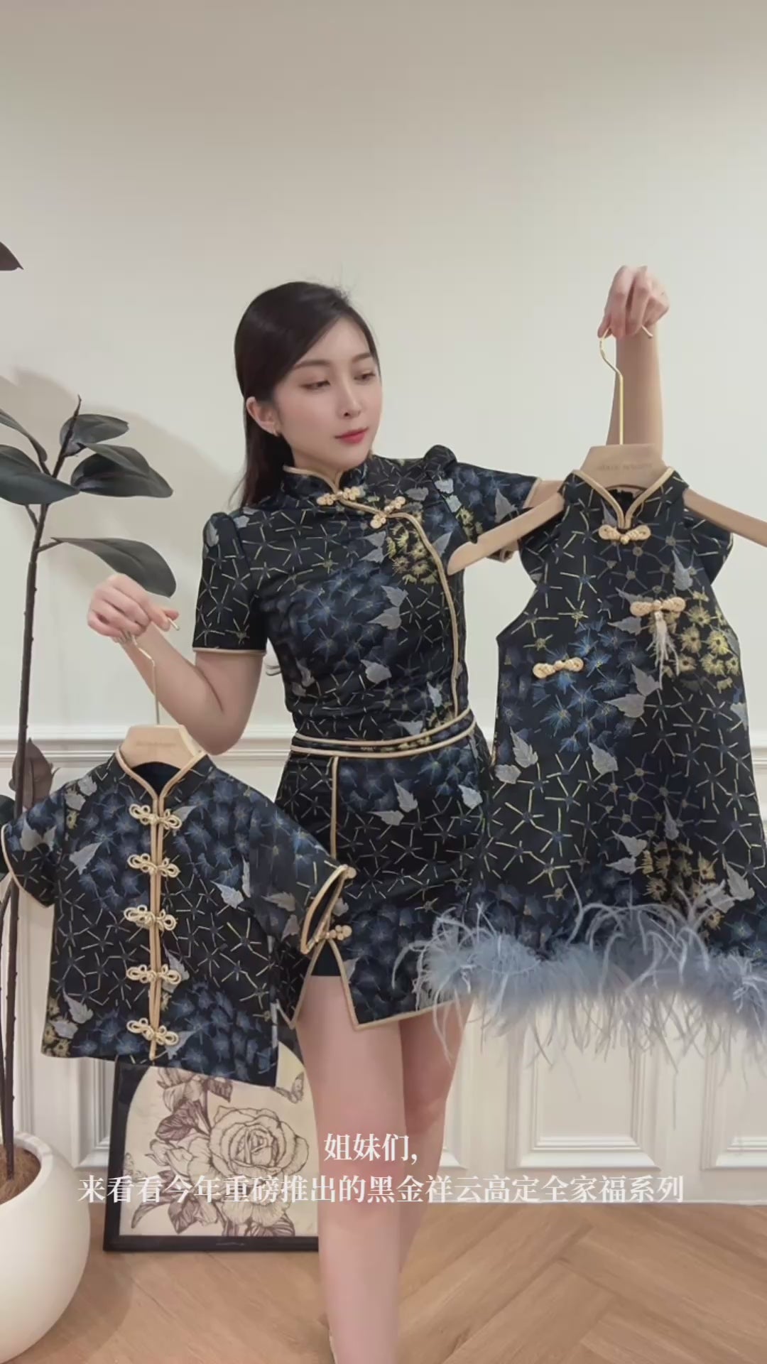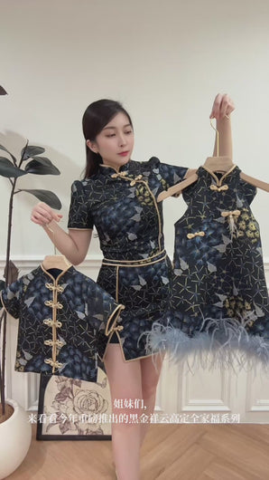 • 手工金色盘扣细节,呼应妈妈款造型