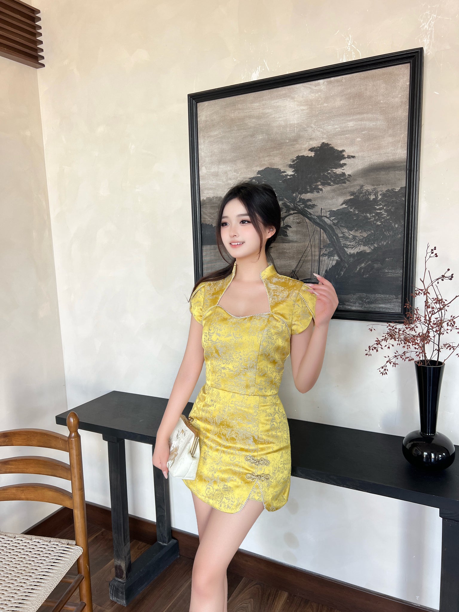 - 金丝盘扣设计,低调奢雅,凸显东方礼仪美学