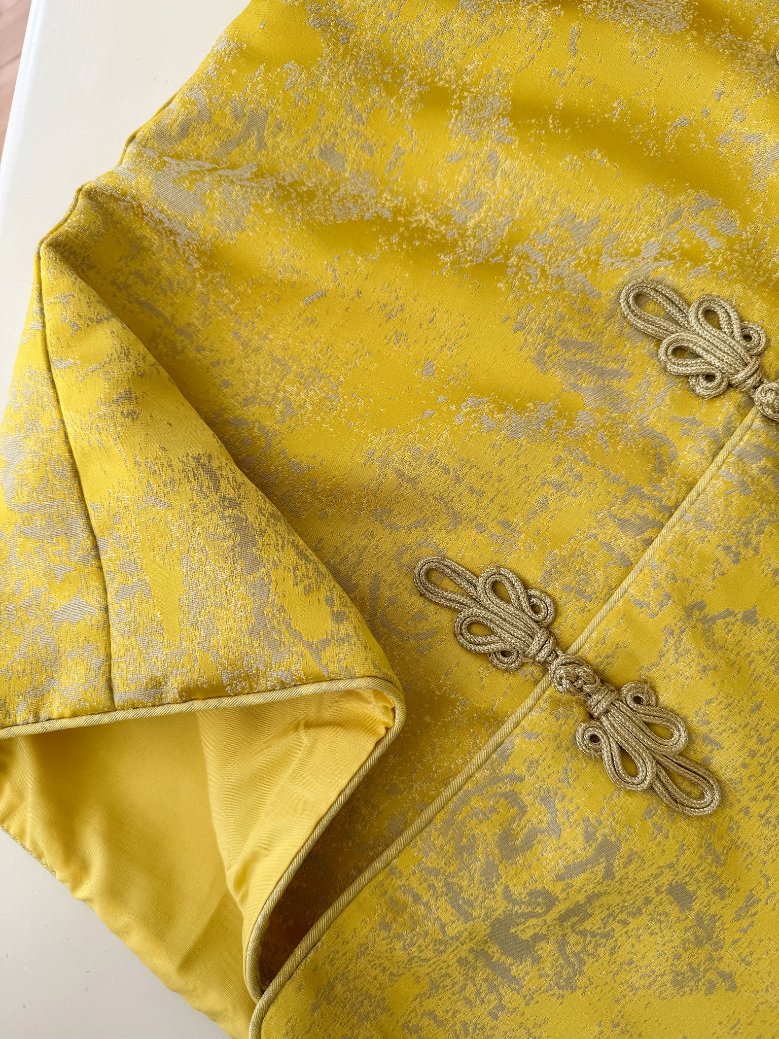 - 金色提花锦缎面料,稳重中透出高级光泽