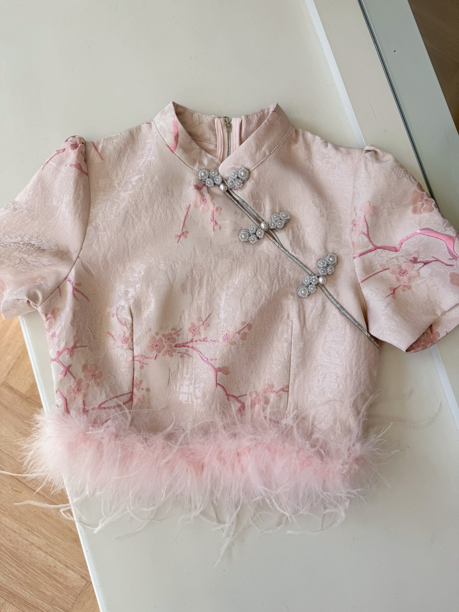 • 盘扣细节:精致手工盘扣,点缀珍珠元素